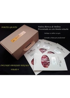 20 envelopes of 100 grs. Acorn Iberico Shoulder with a 24-month cure, hand-cut by our professional cutter in a "Special Gourmet" Edition
