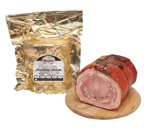 Veroni's roasted porchetta is based on an ancient artisan recipe. It is flavoured with a special selection of natural spices, tied by hand and slowly cooked in the oven for an inimitable taste. Average weight: 5, 4 kg. Gluten-free, no MSG added, lactose and dairy free, no added polyphosphates, only with natural flavourings.